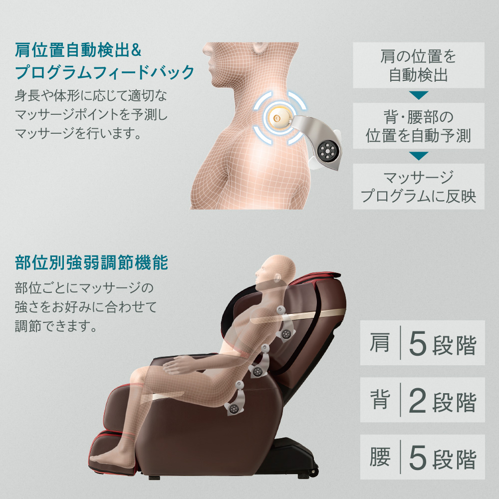 身長や体形に応じて適切なマッサージポイントを予測しマッサージを行います。