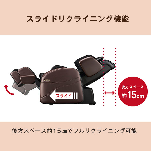 座面が前方にスライドするため、限られたスペースでもフルリクライニングができます。
