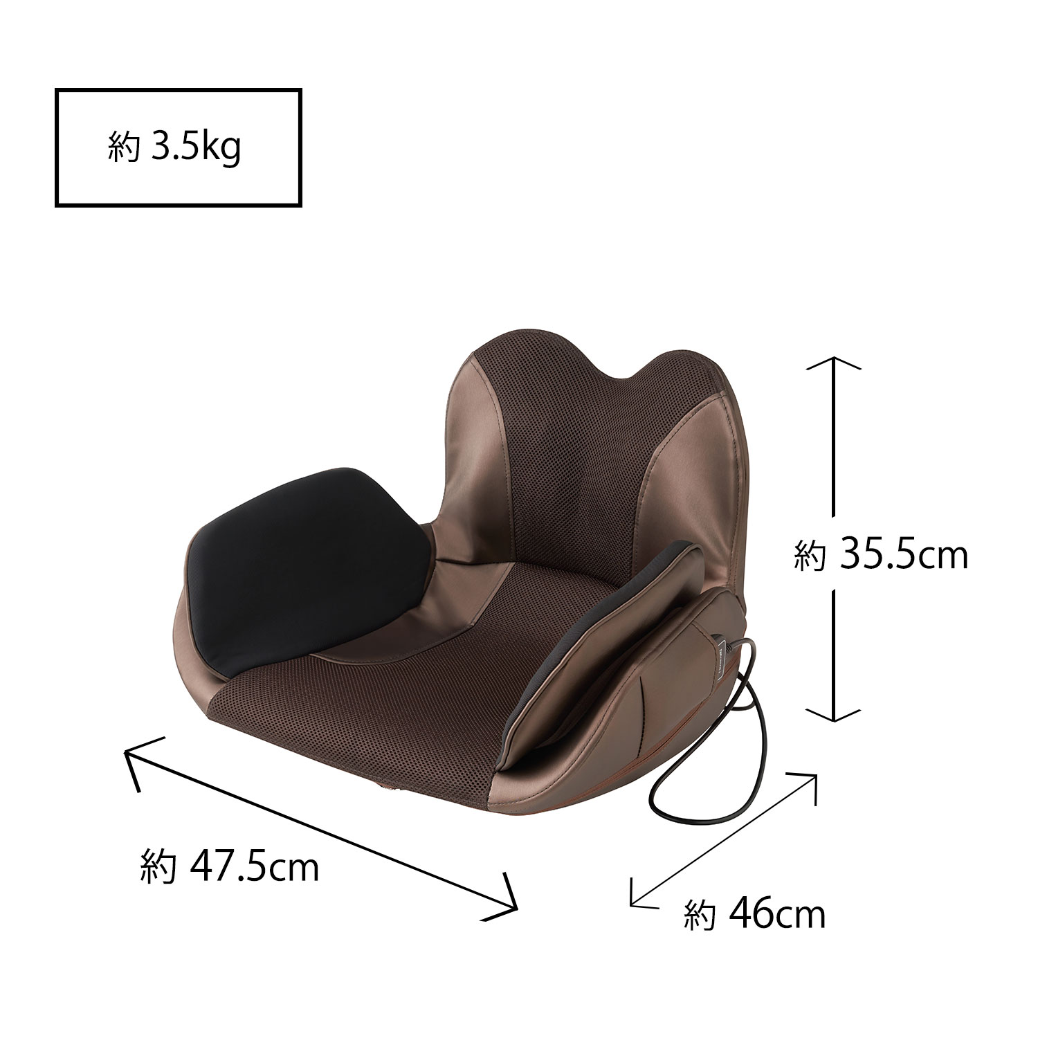 6か所に搭載されたエアーバッグで骨盤まわりを包み込んでもみほぐす「骨盤エアーマッサージ」、背面に搭載した振動指圧球によるバイブレーターとエアーバッグの組み合わせで、骨盤の中心部分となる仙骨まわりの筋肉を心地よくもみほぐす「骨盤アジャスト機構」の2つのマッサージ機能で広範囲にマッサージします。