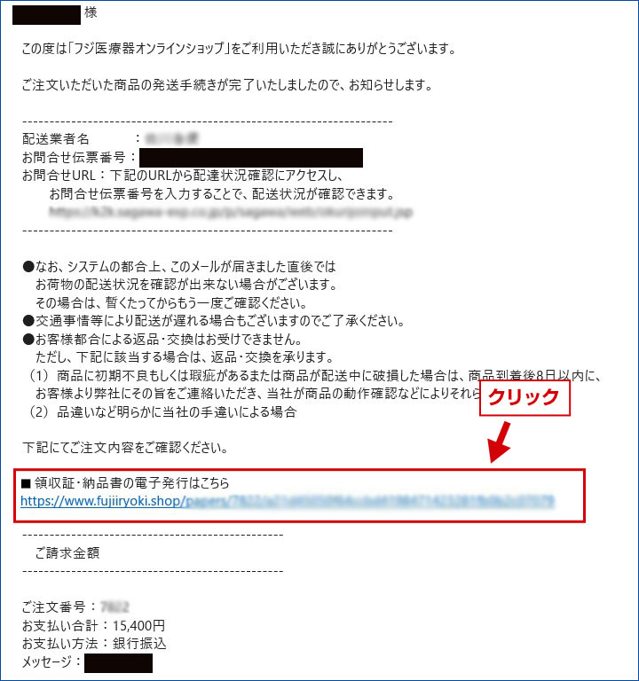 ・領収証の電子発行の対象は、クレジットカード決済、PayPay、銀行振込のみです。代金引換、コンビニ決済は納品書のみ発行いたします。