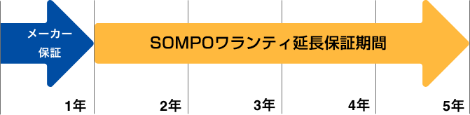 延長保証とは、メーカー保証期間(1年間)が終了した翌日から4年間の保証になります。尚、保証加入日は商品のお届け日となります。